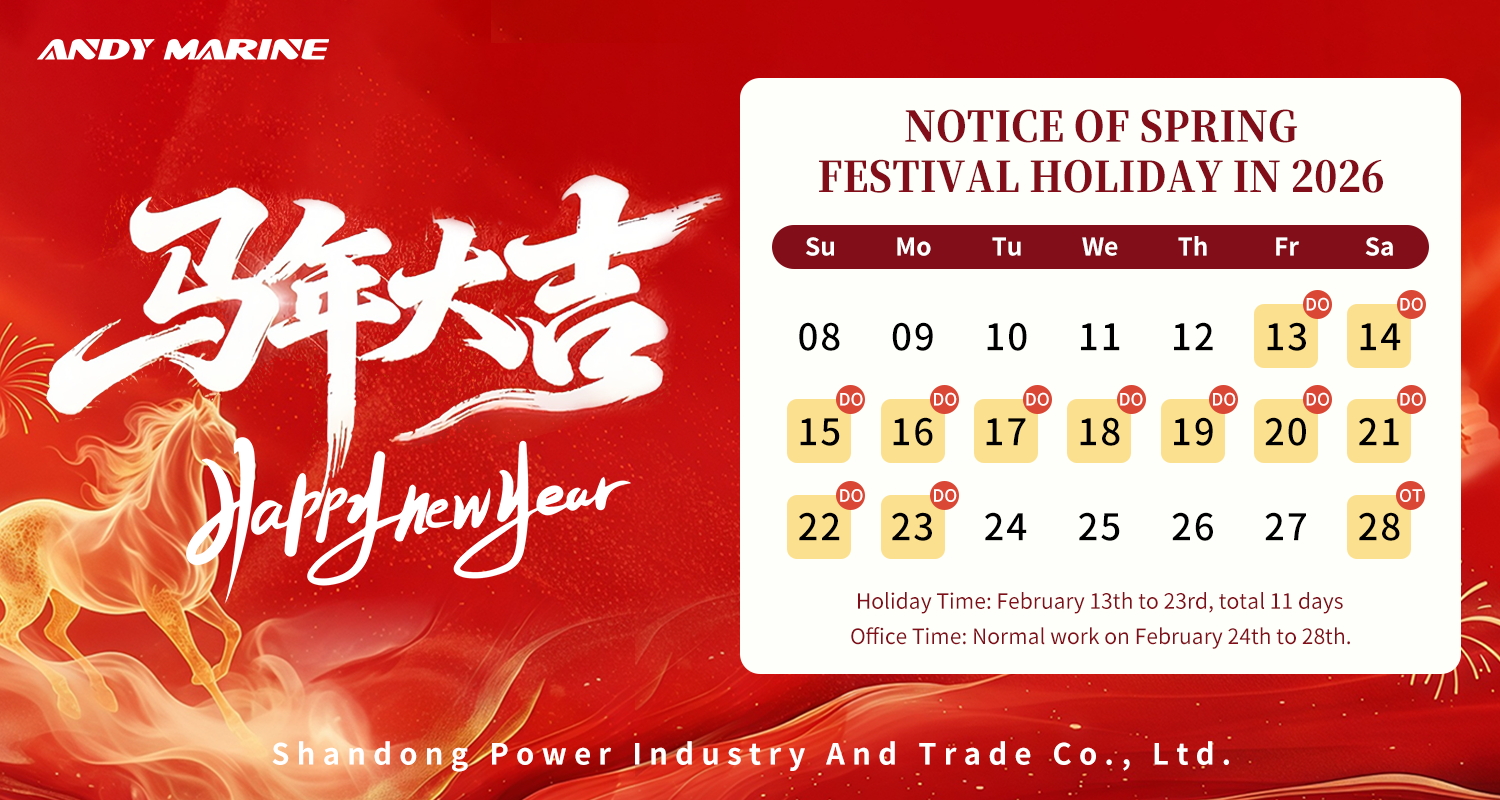 Ing taun anyar, Andy Marine bakal terus fokus ing kualitas produk, pangembangan produk anyar, lan layanan pelanggan, nglayani saben pelanggan kanthi apik nalika ngupaya kesempatan kerja sama jangka panjang. Matur nuwun kanthi tulus kanggo kepercayaan lan dhukungan.